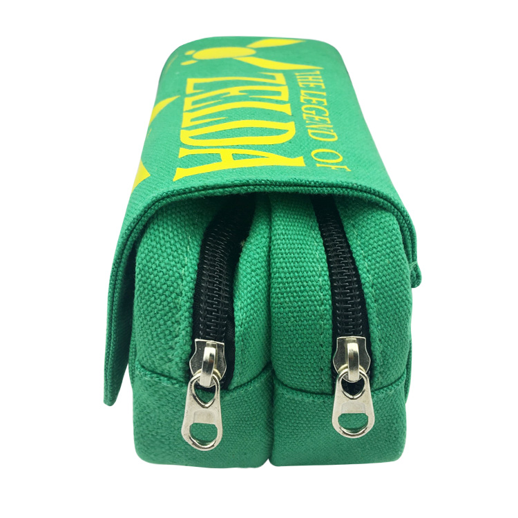 塞尔达传说绿色帆布双层拉链翻盖笔袋 文具盒