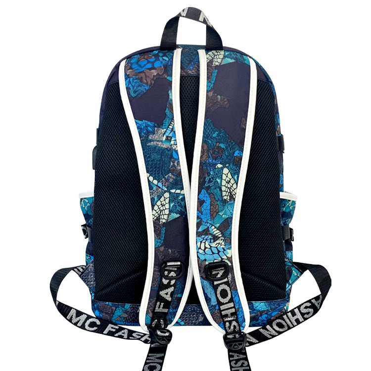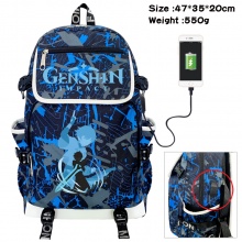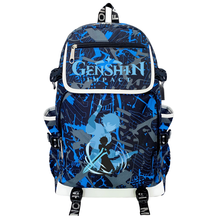 原神动漫周边迷彩翻盖数据线双肩背包 学生usb充电接口书包
