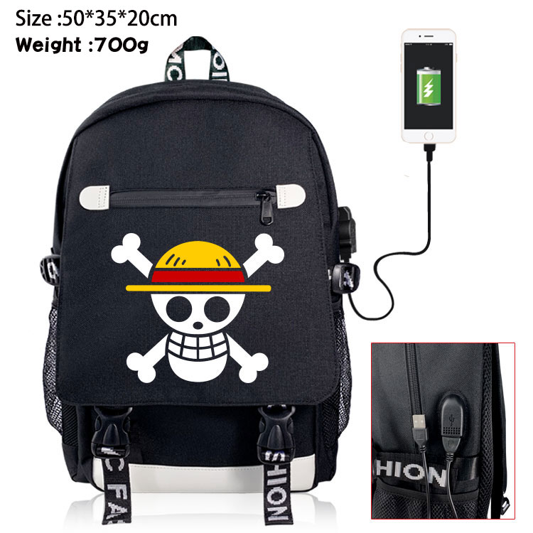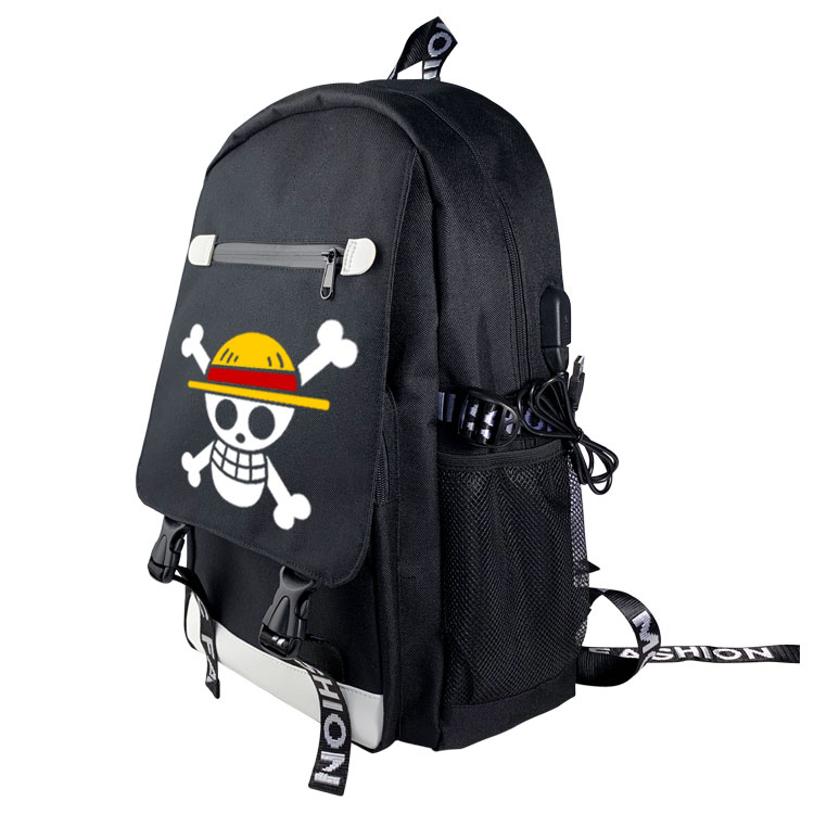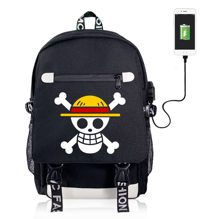 海贼王翻盖数据线双肩背包 学生usb充电接口帆布书包