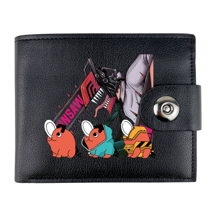 电锯人动漫周边软真皮按扣黑皮卡册对折钱包卡包