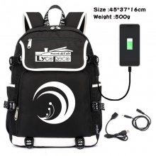 莉可丽丝动漫周边上下图数据线双肩背包 学生usb充电接口帆布书包