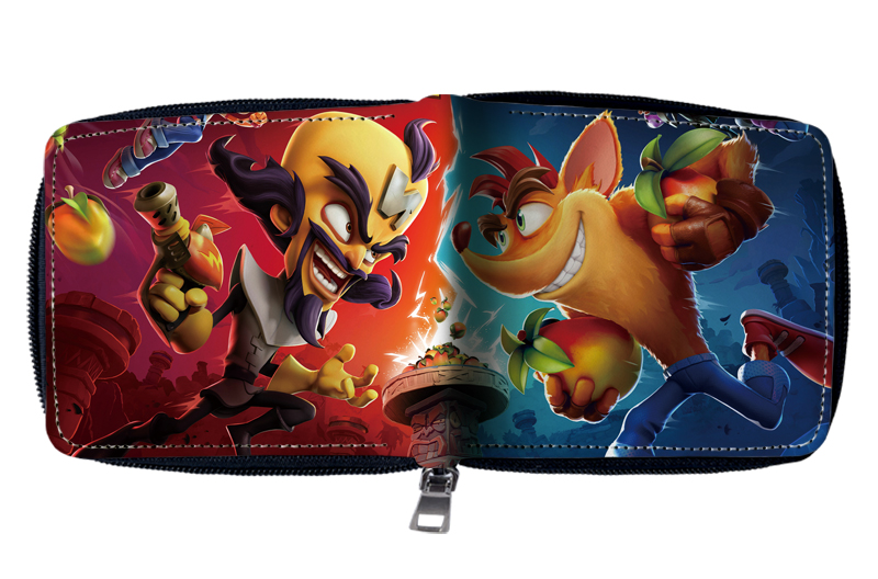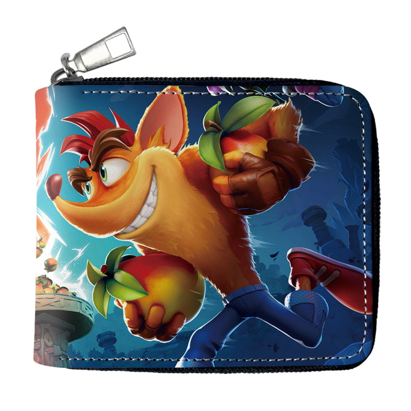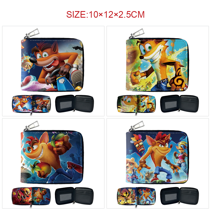 crash bandicoot周边卡通印花零钱包二次元青少年学生卡包短款拉链钱包