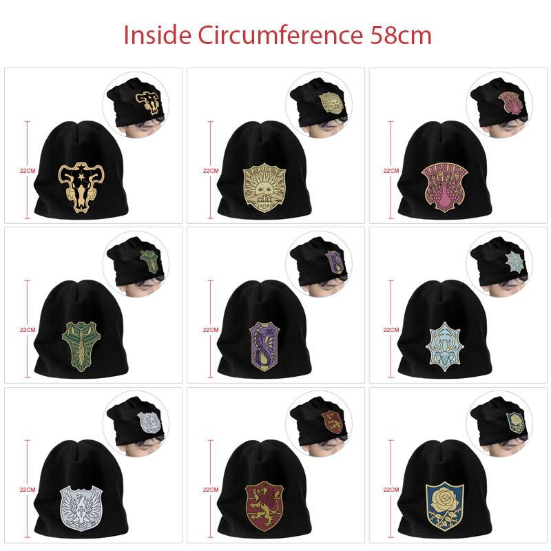 黑色四叶草动漫周边毛线帽 秋冬季保暖针织帽 男女套头毛绒帽子