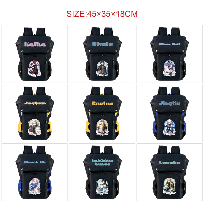 崩坏星穹铁道游戏周边双肩背包 USB充电印花休闲电脑包旅行包拼色桶包