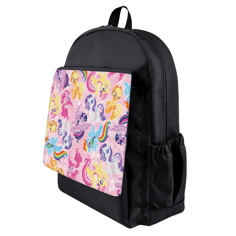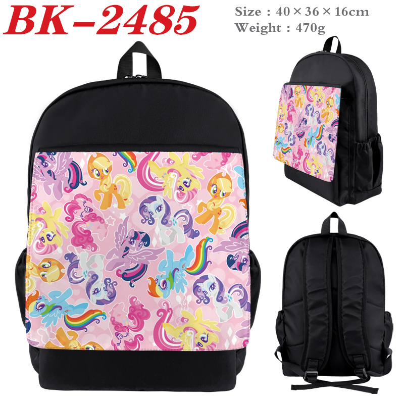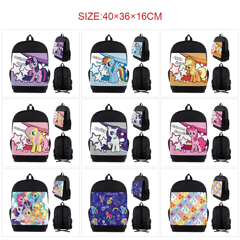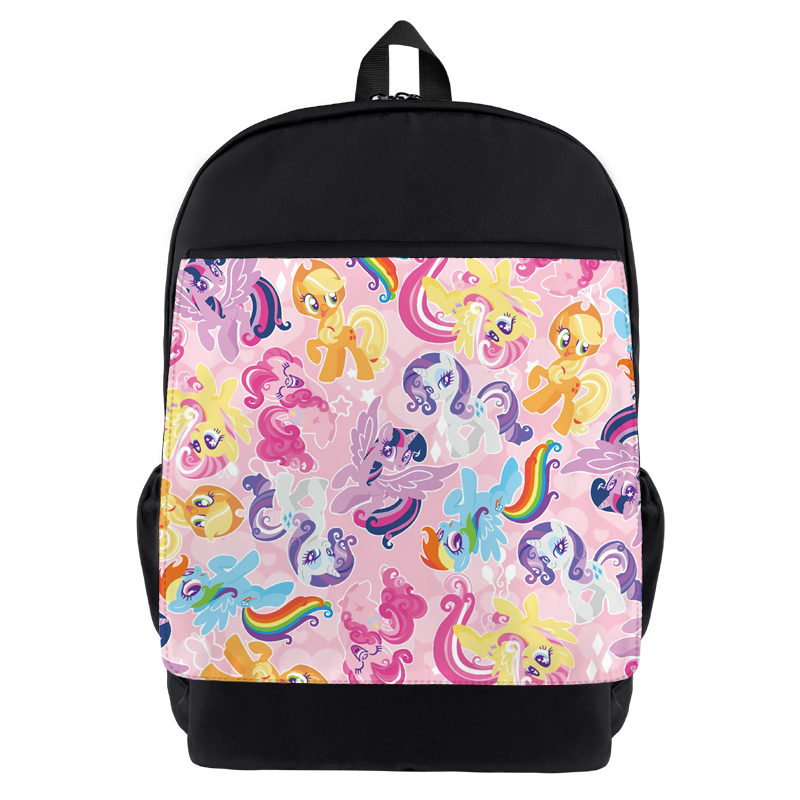 小马宝莉动漫周边黑色翻盖彩图背包耐磨双肩包男女学生书包 BK-2485