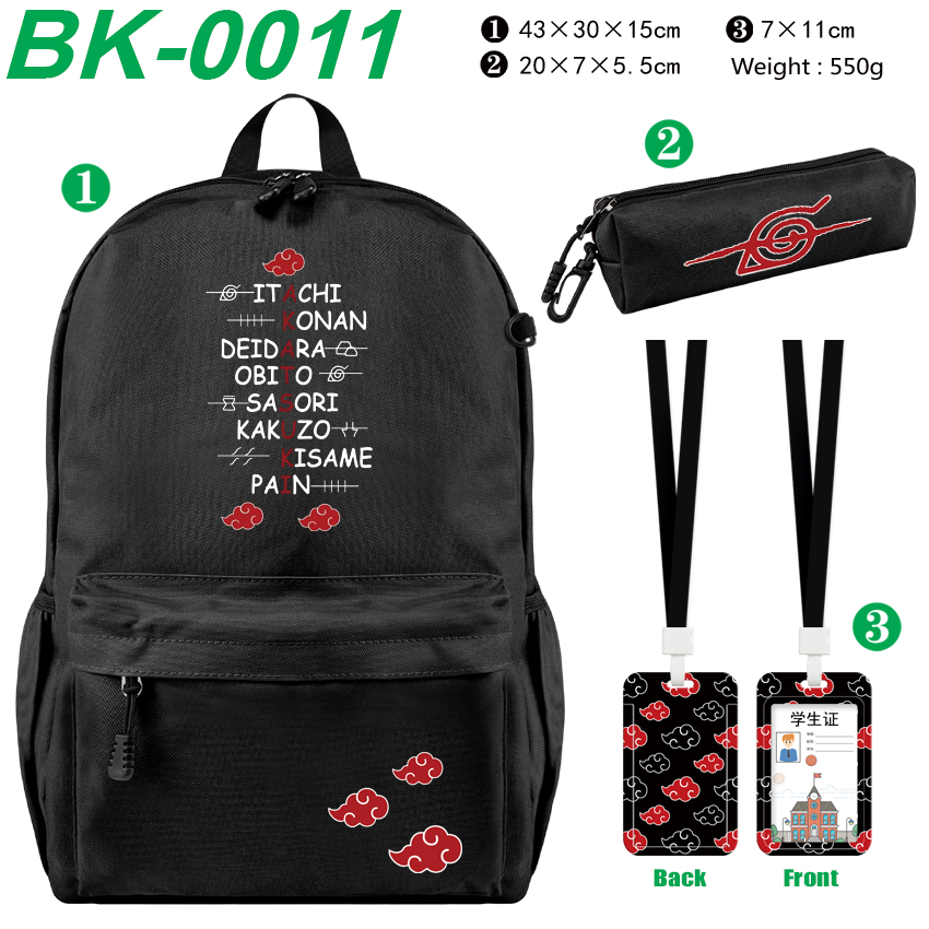 火影忍者动漫周边学生背包三件套双肩包单肩包笔袋学习套装 BK-0011