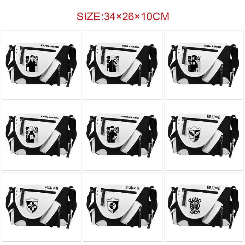 怪兽8号周边PU皮黑白拼色挎包 休闲包 怪兽8号-10