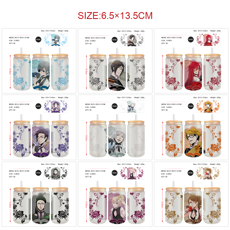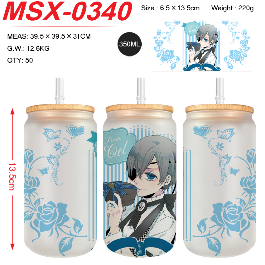 黑执事动漫周边水杯 磨砂玻璃杯带盖吸管杯350ml MSX-0340
