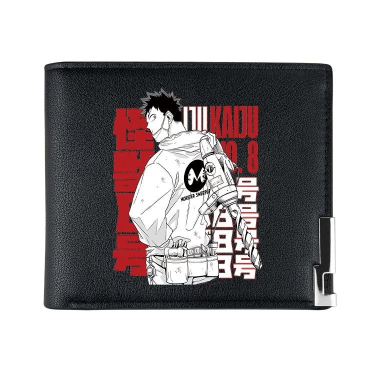 怪兽8号动漫周边PU黑皮金属扣小装饰 二折钱包短款皮夹 JSK-1033