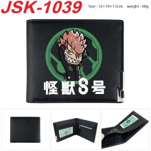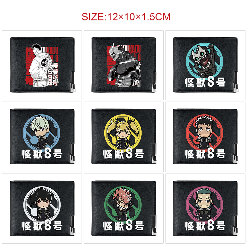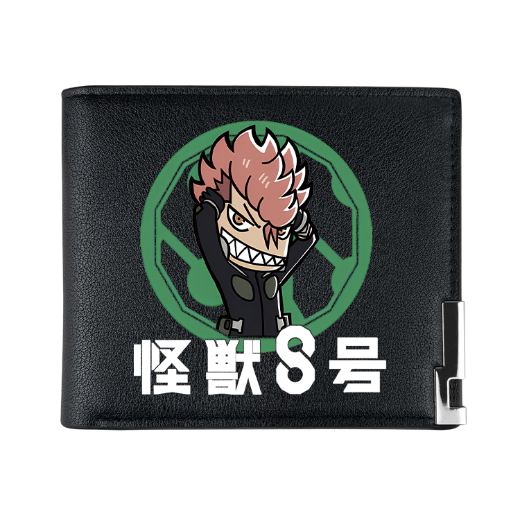 怪兽8号动漫周边PU黑皮金属扣小装饰 二折钱包短款皮夹 JSK-1039
