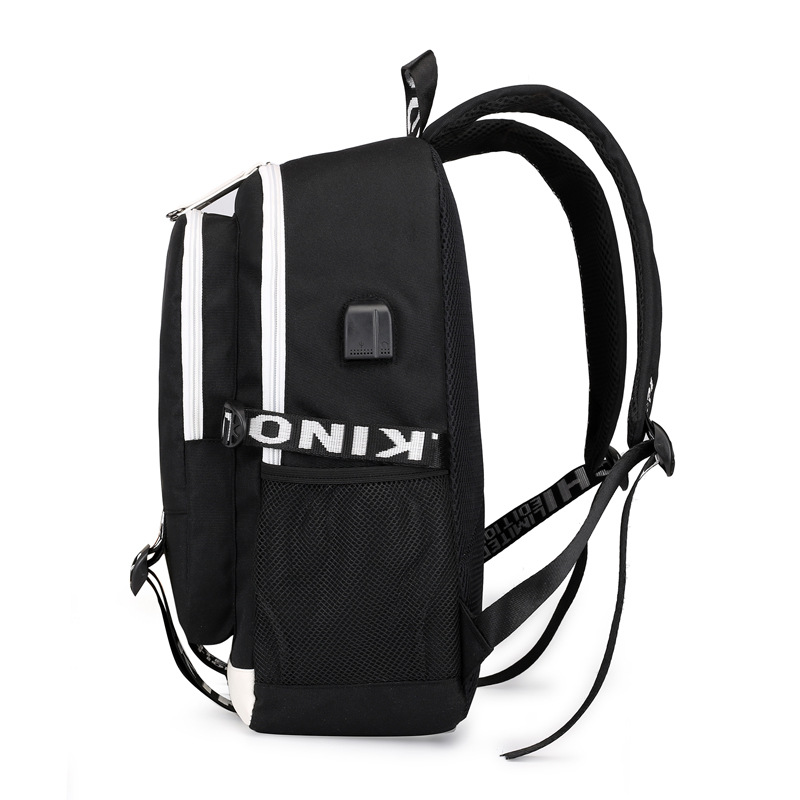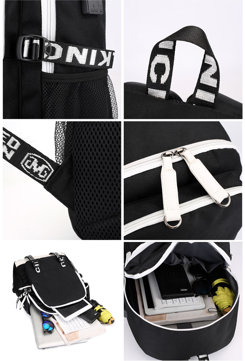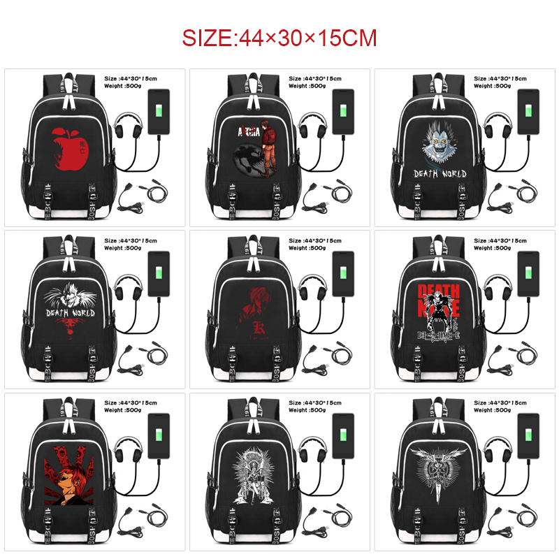 死亡笔记漫画周边白拉链数据线双肩背包 学生usb充电接口帆布书包 死亡笔记-11