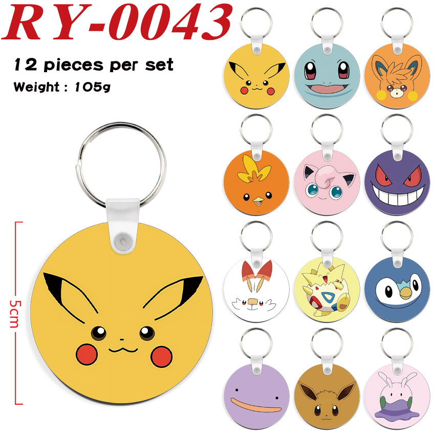 宝可梦宠物小精灵动漫周边简约圆形钥匙扣小挂件配饰12个一套 RY-0043