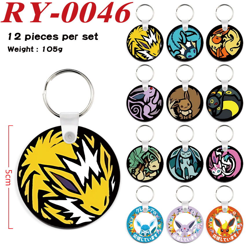 宝可梦宠物小精灵动漫周边简约圆形钥匙扣小挂件配饰12个一套 RY-0046