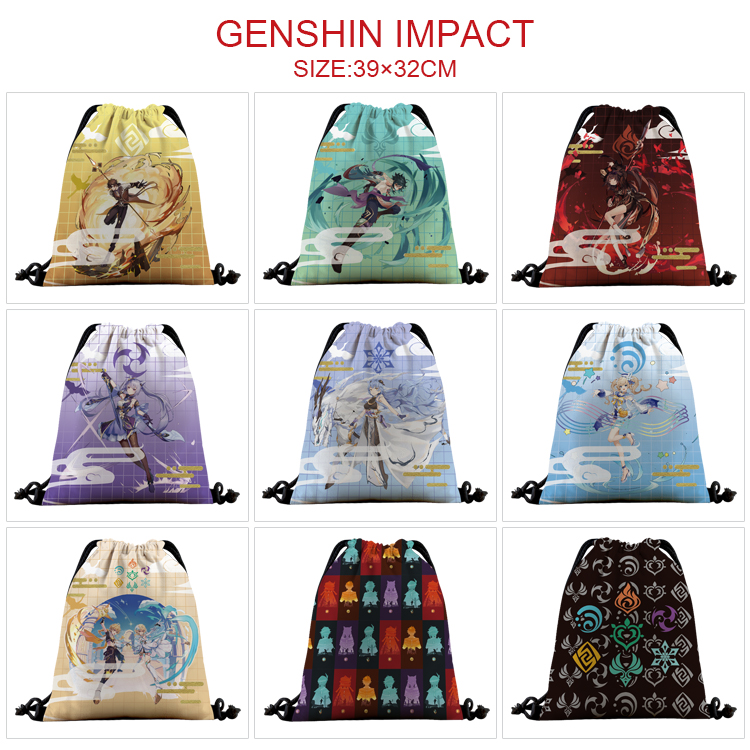原神游戏全彩束口袋双肩包 抽绳帆布背包收纳包