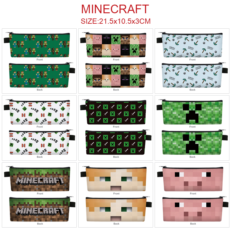 我的世界动漫周边PU皮革拉链笔袋 文具收纳盒