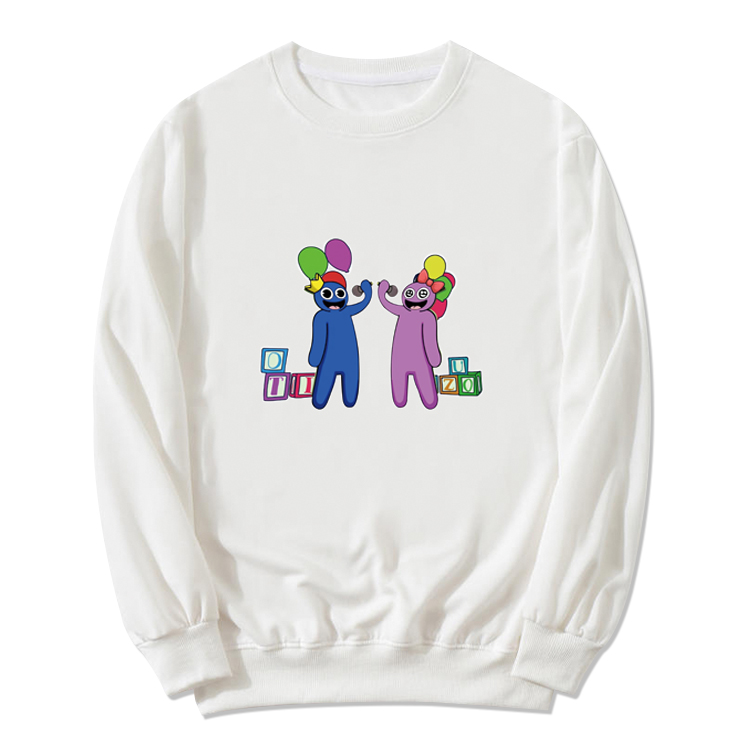 彩虹朋友游戏动漫周边薄款白色圆领纯棉卫衣