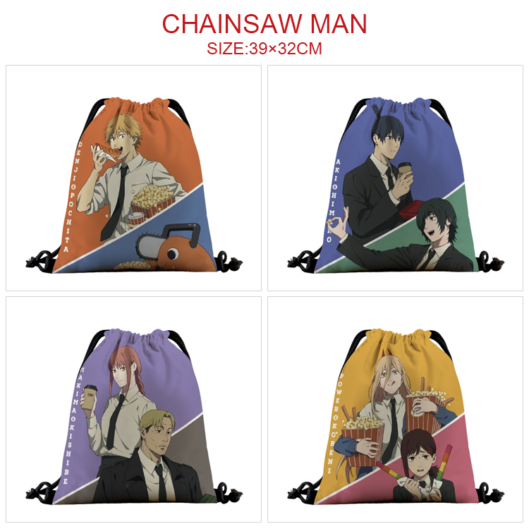 电锯人动漫周边全彩束口袋双肩包 抽绳帆布背包收纳包