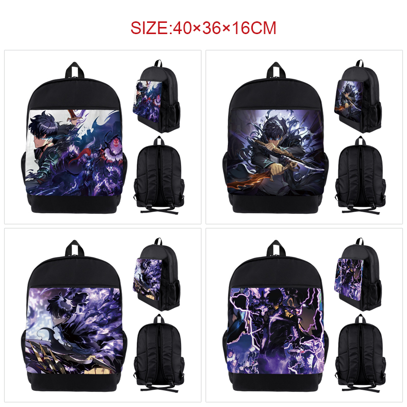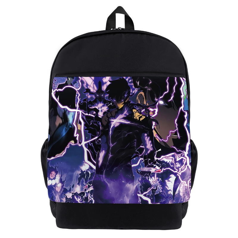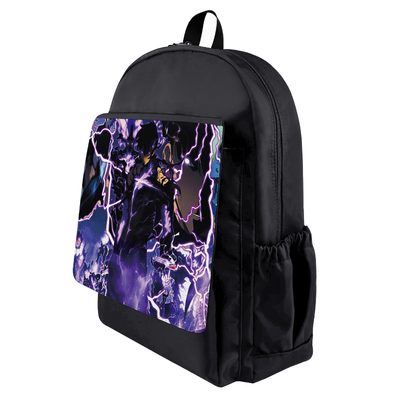 我独自升级动漫周边黑色翻盖彩图背包耐磨双肩包男女学生书包 BK-2428