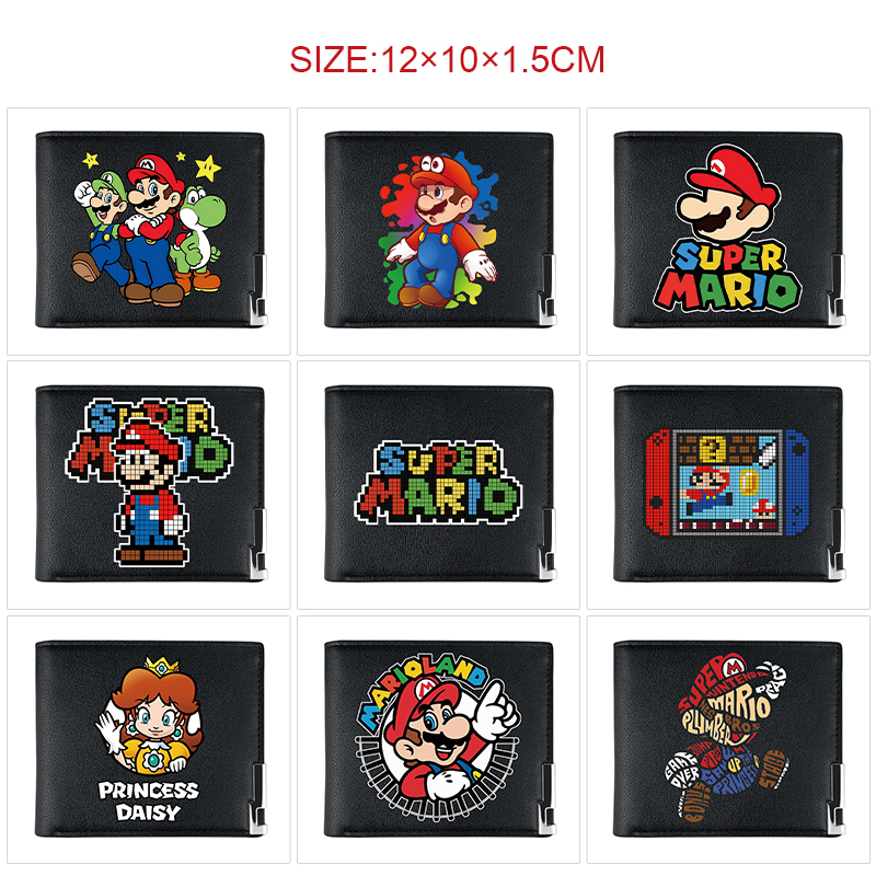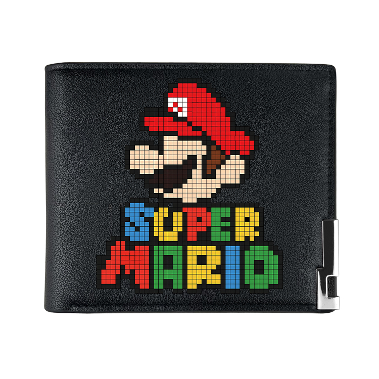 超级玛丽游戏周边PU黑皮金属扣小装饰 二折钱包短款皮夹 JSK-1117