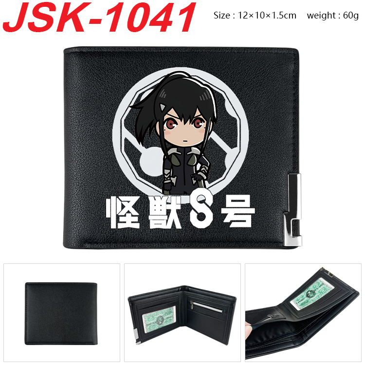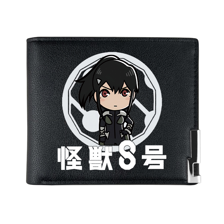 怪兽8号动漫周边PU黑皮金属扣小装饰 二折钱包短款皮夹 JSK-1041