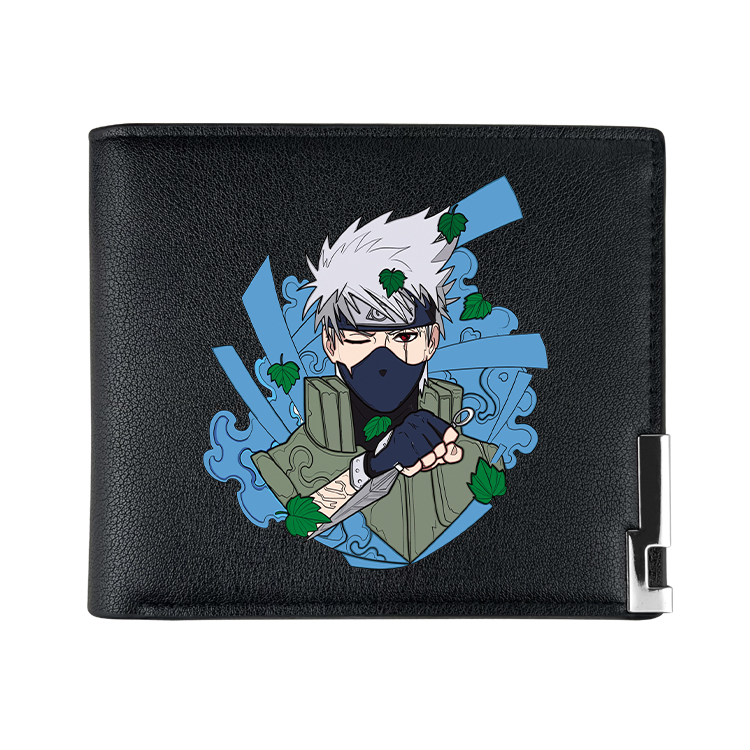 火影忍者动漫周边PU黑皮金属扣小装饰 二折钱包短款皮夹 JSK-1013