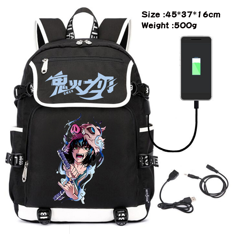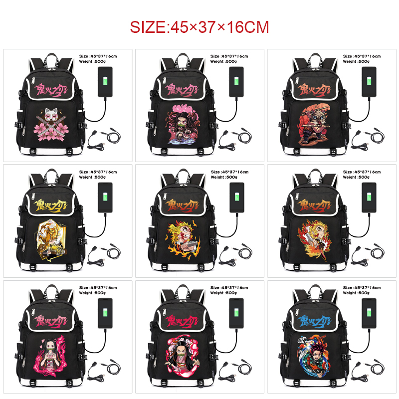鬼灭之刃动漫周边大容量学生书包印花白边翻盖双肩USB充电旅行包 鬼灭之刃-10
