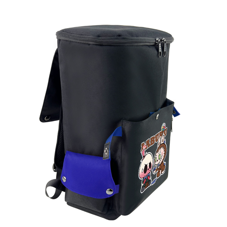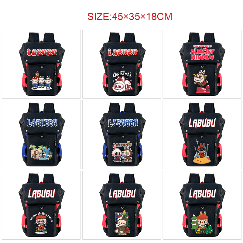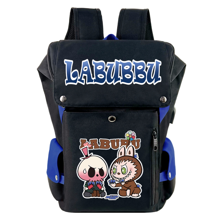 labubu拉布布动漫周边双肩背包 USB充电印花休闲电脑包旅行包拼色桶包 labubu-5